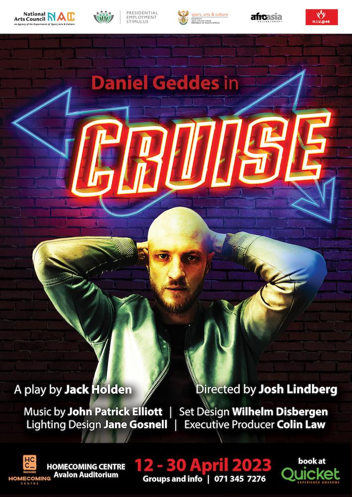 This South African production of Cruise is directed by Josh Lindberg, with original music by John Patrick Elliott, set design by Wilhelm Disbergen and lighting by Jane Gosnell.